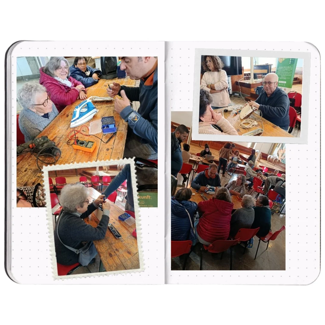 Veja algumas das imagens dos nossos Cafés-Reparação de 2025