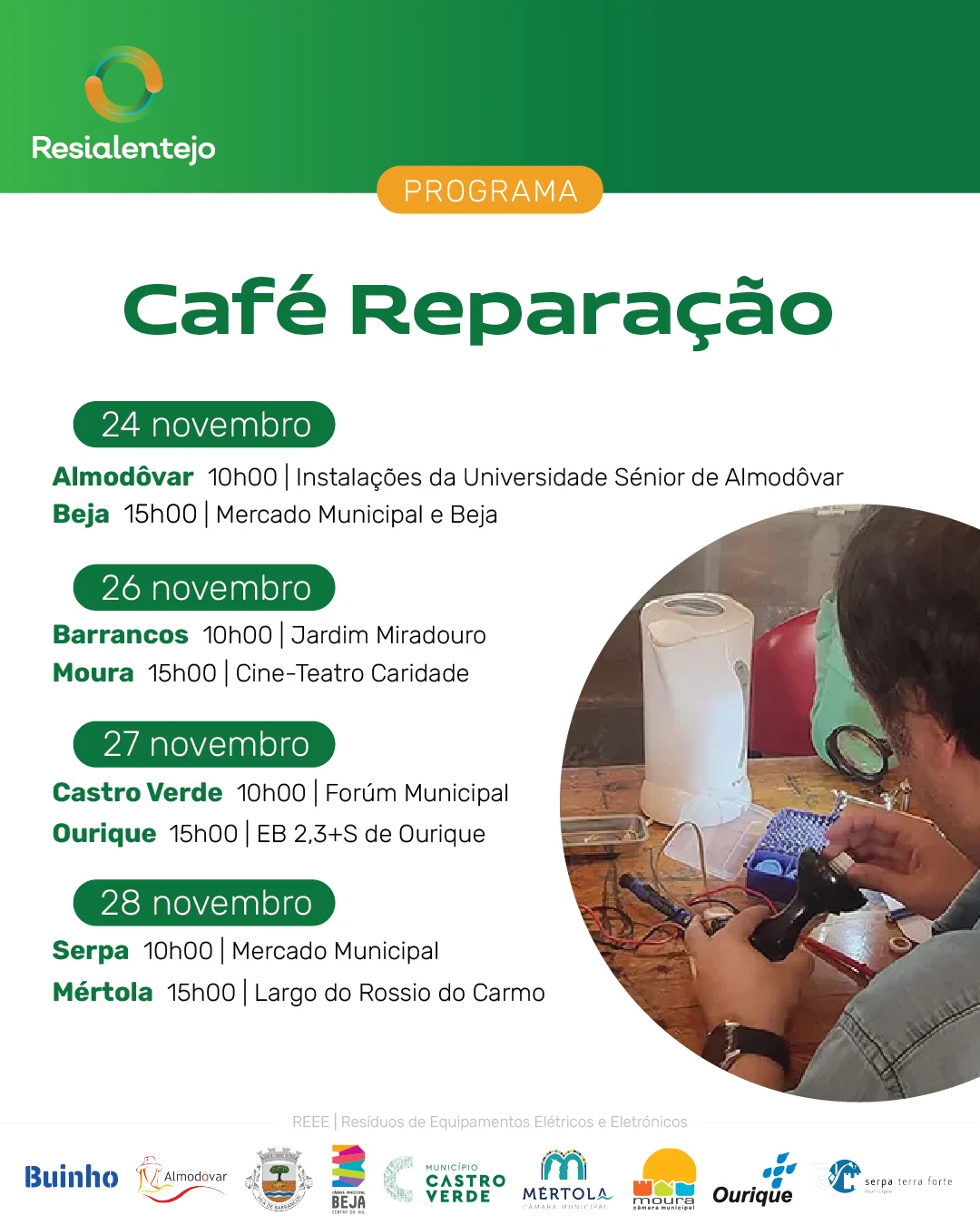 Veja também algumas imagens dos nossos Café-Reparação de 2023 e 2024